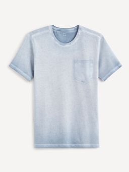Bavlněné tričko s lehkou batikou. Na hrudi našitá malá kapsička. Krátký rukáv a kulatý výstřih.