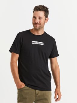 Jednobarevné tričko s nápisem. Krátký rukáv a kulatý výstřih ke krku. 100% bavlna.
