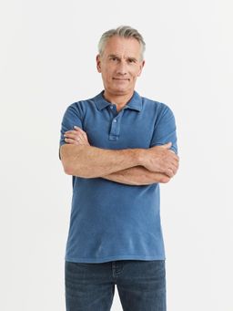 Bavlněné polo tričko s krátkým rukávem. Měkký límeček a u krku zapínání na tři knoflíčky. Jednobarevné s lehkou batikou.