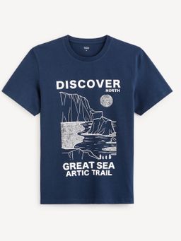 Bavlněné tričko s kulatým výstřihem. Krátký rukáv a rovný střih. Barevný potisk na přední straně.