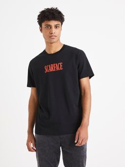 Černé tričko s potiskem Scarface. Krátký rukáv a kulatý výstřih. Rovný střih. 100% bavlna.