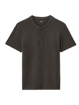 Perfektní tričko pro ležérní vzhled v každém ročním období. Šedé tričko s krátkým rukávem v regular střihu je vyrobené ze strečové piké bavlny, která je příjemná na dotek. Henley výstřih a piké materiál dodávají tričku nadčasovou jednoduchost i pohodlí.