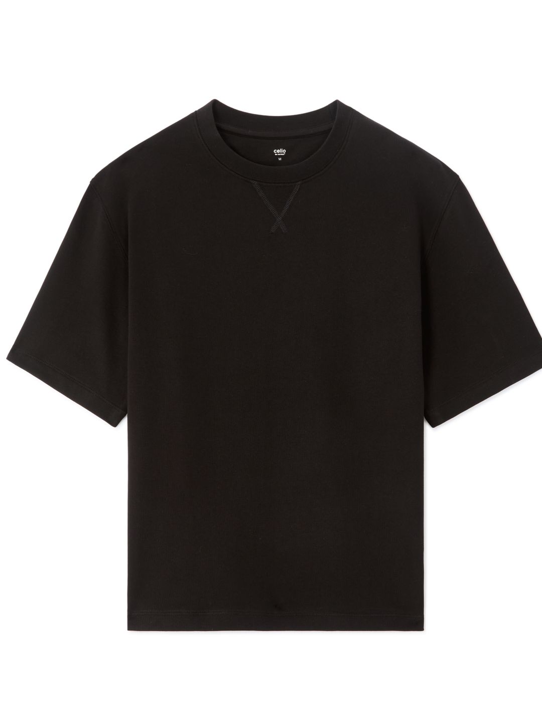 Tričko, které si okamžitě oblíbíš. Jednoduché černé tričko z měkkého flísového materiálu, s volným střihem, krátkými rukávy a kulatým výstřihem nabízí moderní pohodlí a příjemný pocit na těle, ideální pro muže, který chce vypadat stylově.