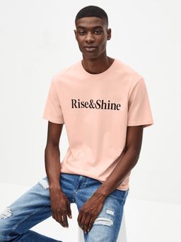 Jednobarevné bavlněné tričko s nápisem Rise&Shine. Kulatý výstřih a krátký rukáv.