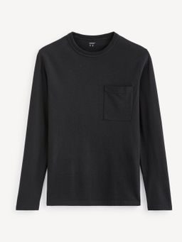 Jednobarevné tričko s dlouhým rukávem. Vaflová struktura. Kulatý výstřih ke krku. Na hrudi kapsička. 100% bavlna.