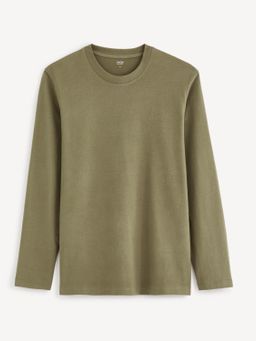 Bavlněné tričko s dlouhým rukávem. Kulatý Výstřih ke krku. Rovný střih a měkký bavlněný úplet. Jednobarevné tričko s dlouhým rukávem by rozhodně nemělo chybět v pánském šatníku.