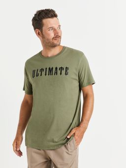 Bavlněné tričko s nápisem Ultimate. Krátké rukávy a kulatý výstřih ke krku.