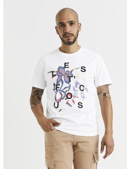 Bavlněné tričko s barevným potiskem. Krátké rukávy a kulatý výstřih ke krku. Rovný střih.