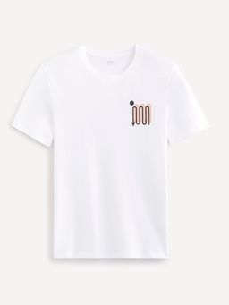 Bavlněné tričko s krátkým rukávem a potiskem. Kulatý výstřih ke krku.