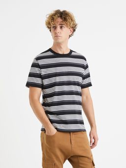 Bavlněné pruhované tričko. Krátký rukáv a kulatý výstřih.