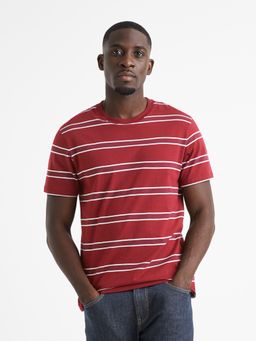 Bavlněné pruhované tričko. Krátký rukáv a kulatý výstřih. 100% bavlna.