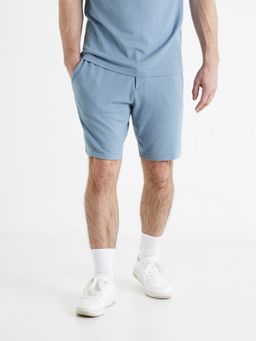 Úpletové kraťasy s pružným pasem. V pase navíc stahovací šňůrka. Šikmé boční kapsy. Délka nad kolena. Příjemné jednobarevné kraťasy na pohodu.