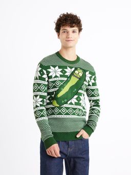 Ne každý nosí s oblibou tradiční vánoční svetr. Aby tomu bylo tento rok jinak, nabízíme originální svetr z limitované edice Rick & Morty se známým motivem Pickle Rick. Věříme, že svetr z této kolekce budeš nosit hrdě a rád až do Silvestra. Svetr má zelenobílou kombinaci barev, střih přes hlavu, kulatý výstřih a žakárový vzor.
