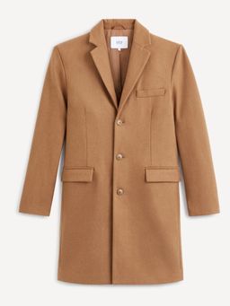 Jednobarevný kabát se skvěle hodí k obleku nebo k chinos kalhotám s košilí. Kvalitní kabát s vysokým obsahem vlny nejen zahřeje, ale je velmi elegantní. Klasický střih se zapínáním na tři knoflíky, klopy, přední kapsy s klopami, jedna kapsa na kapesníček a v zadní části rozparek. S lesklou podšívkou a vnitřní skrytou kapsou.