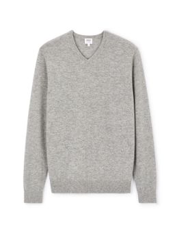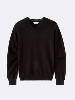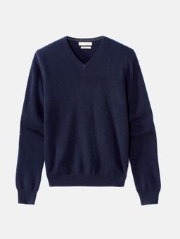 Hladce pletený kašmírový svetr s výstřihem do V. Pružné náplety. Jednobarevný.