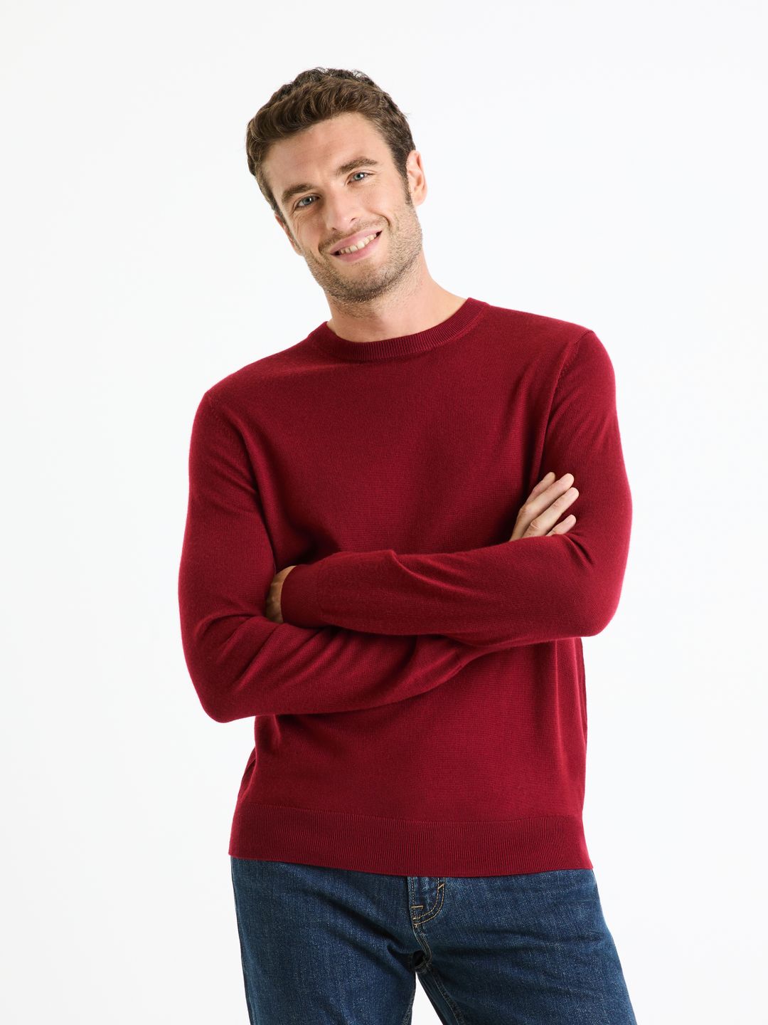 Svetr s hladkou strukturou. Velmi jemná merino vlna. Kulatý výstřih ke krku. Pružné náplety.