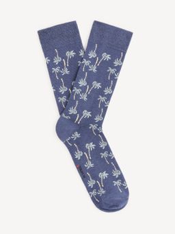 Vysoké ponožky s drobným vzorem. Zesílená pata i špička. Pružný žebrovaný lem.