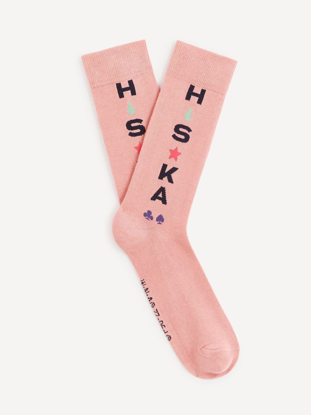 Vysoké ponožky z limitované edice Hutner x Hunter. Pružný žebrovaný lem.