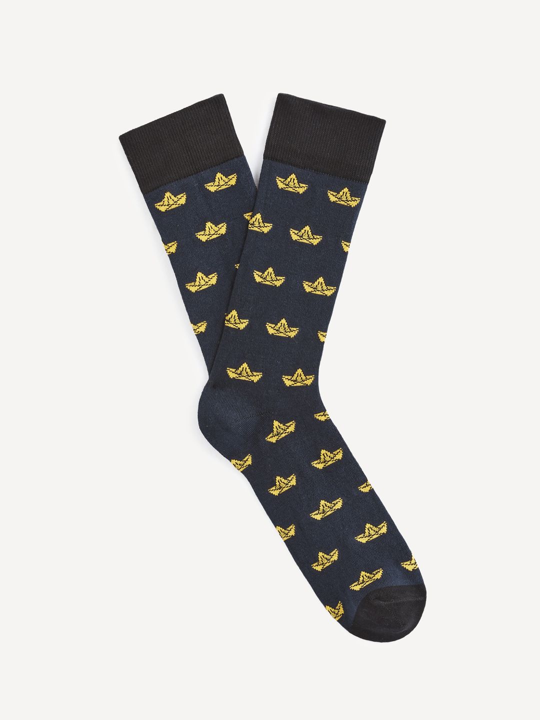 Vysoké ponožky se vzorem origami z bavlny Supima®. Tato prémiová bavlna se vyznačuje hebkostí, pružností, prodyšností a trvanlivostí.