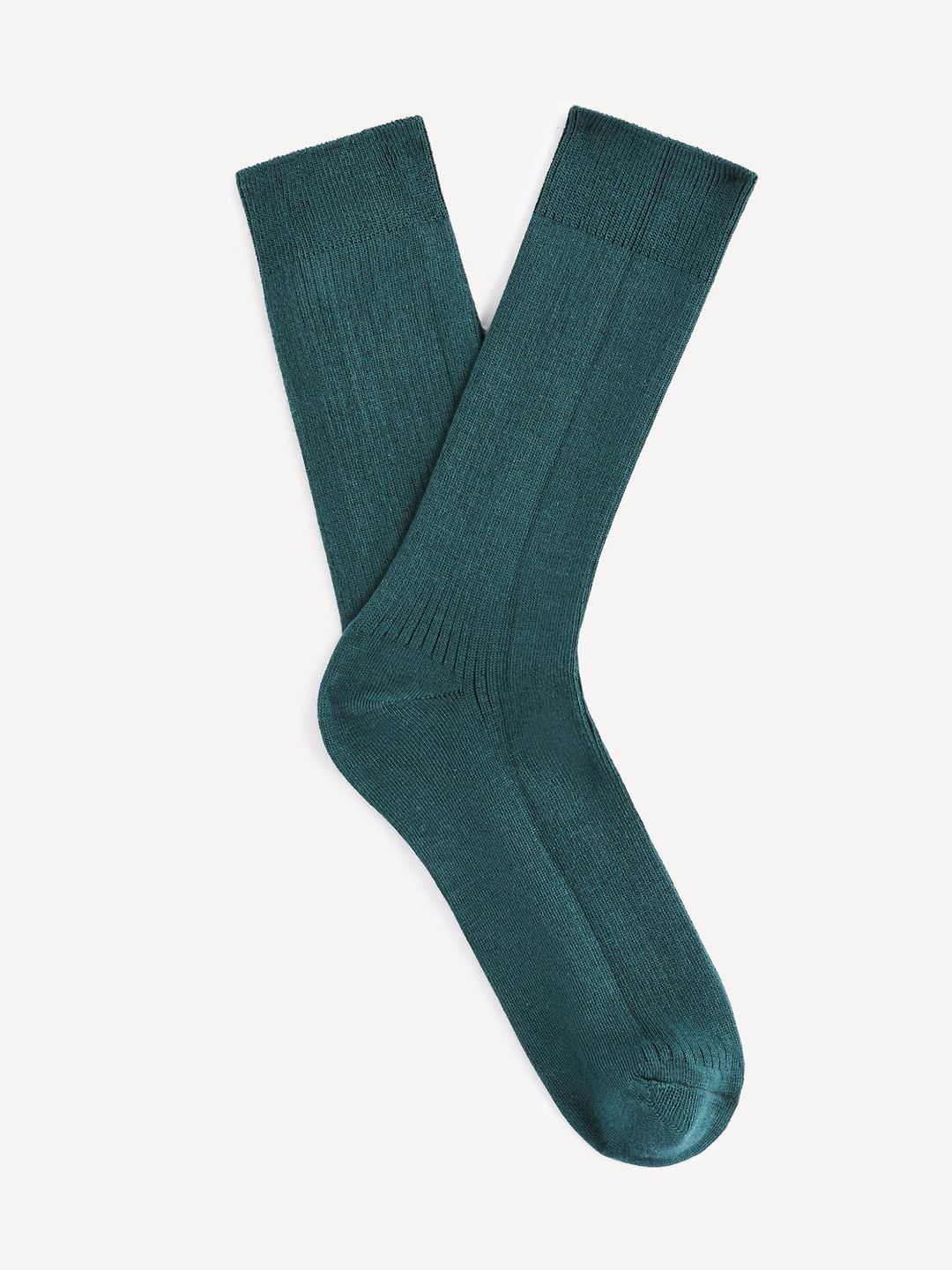 Vysoké jednobarevné ponožky z bavlny Supima®. Zesílená pata i špička. Pružný lem. Příjemný materiál s elastanem.