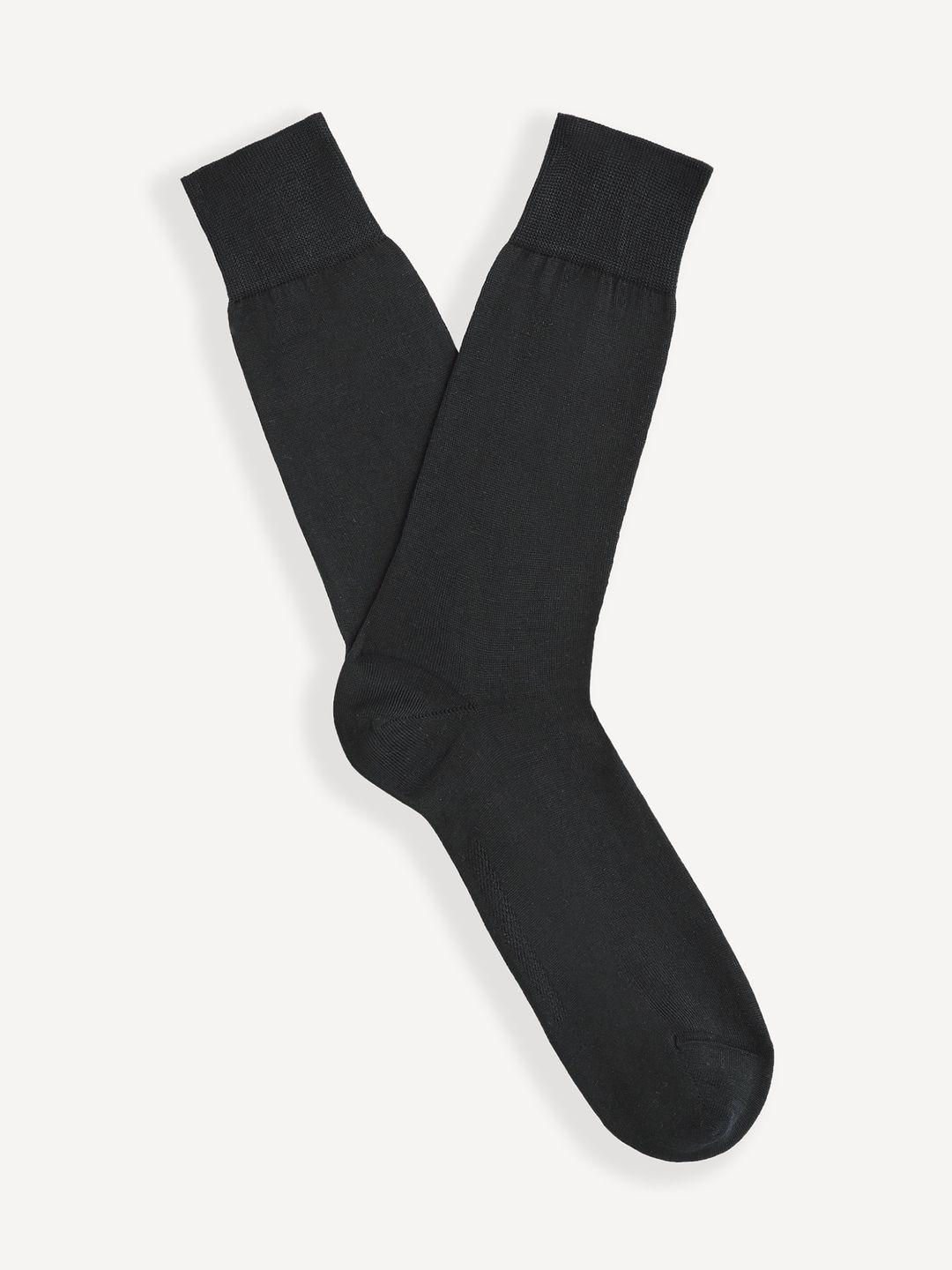 Vysoké ponožky prémiové kvality z žerzeje fil d'Ecosse. Pružný široký náplet.