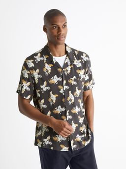 Vzorovaná košile s rozhalenkou. Vzdušný materiál a volný střih. Krátké rukávy a na hrudi našitá malá kapasička. Celopropínací košile nejen na dovolenou.
