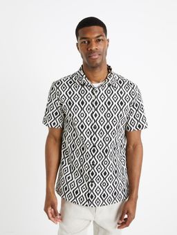 Pánská bavlněná košile se vzorem v kontrastní barvě. Límeček a zapínání na knoflíčky. Rovný střih.