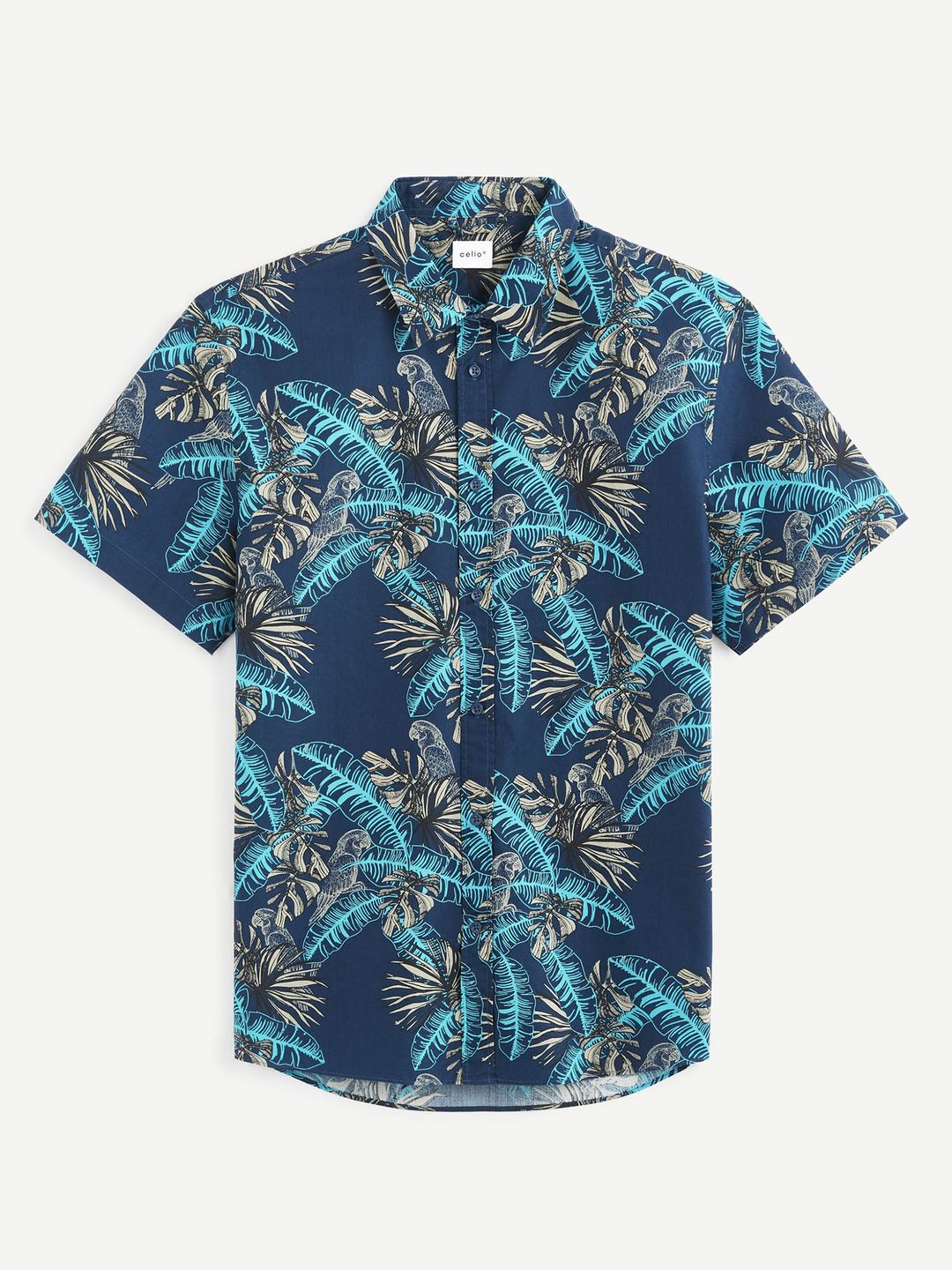 Vícebarevná bavlněná košile s krátkým rukávem. Střih rovný regular. Výrazný plošný vzor. Klasický límeček. Se zapínáním na knoflíčky.