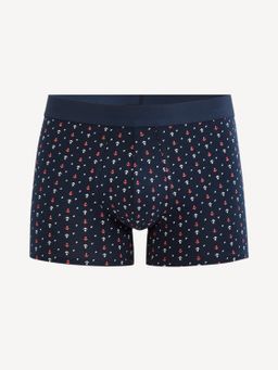 Bavlněné boxerky se výrazným vzorem. Jednobarevný pružný pas. Příjemný materiál s elastanem.