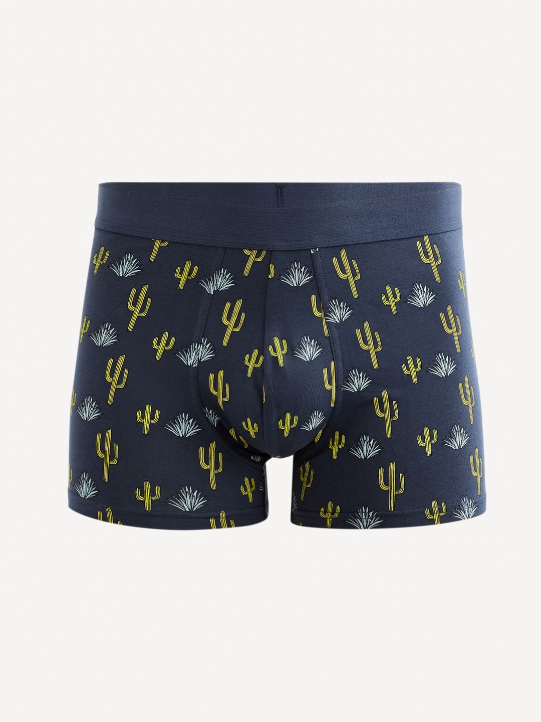 Bavlněné boxerky s výrazným vzorem. Jednobarevný pružný pas. Příjemné na nošení a pohodlné.