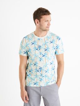 Vzorované tričko s krátkým rukávem. Vzor palmy. Kulatý výstřih ke krku. Rovný střih. Měkký bavlněný úplet.