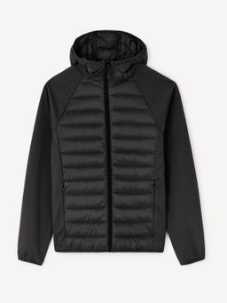 Zůstaň v teple s touto černou péřovou bundou, ideální pro chladná období. Bunda s dlouhým rukávem a kapucí je vybavena zapínáním na zip a praktickými bočními kapsami spolu s jednou vnitřní kapsou. Díky vodotěsnému a větruodolnému softshell povrchu, textilní podšívce budete vždy v teple a suchu. .